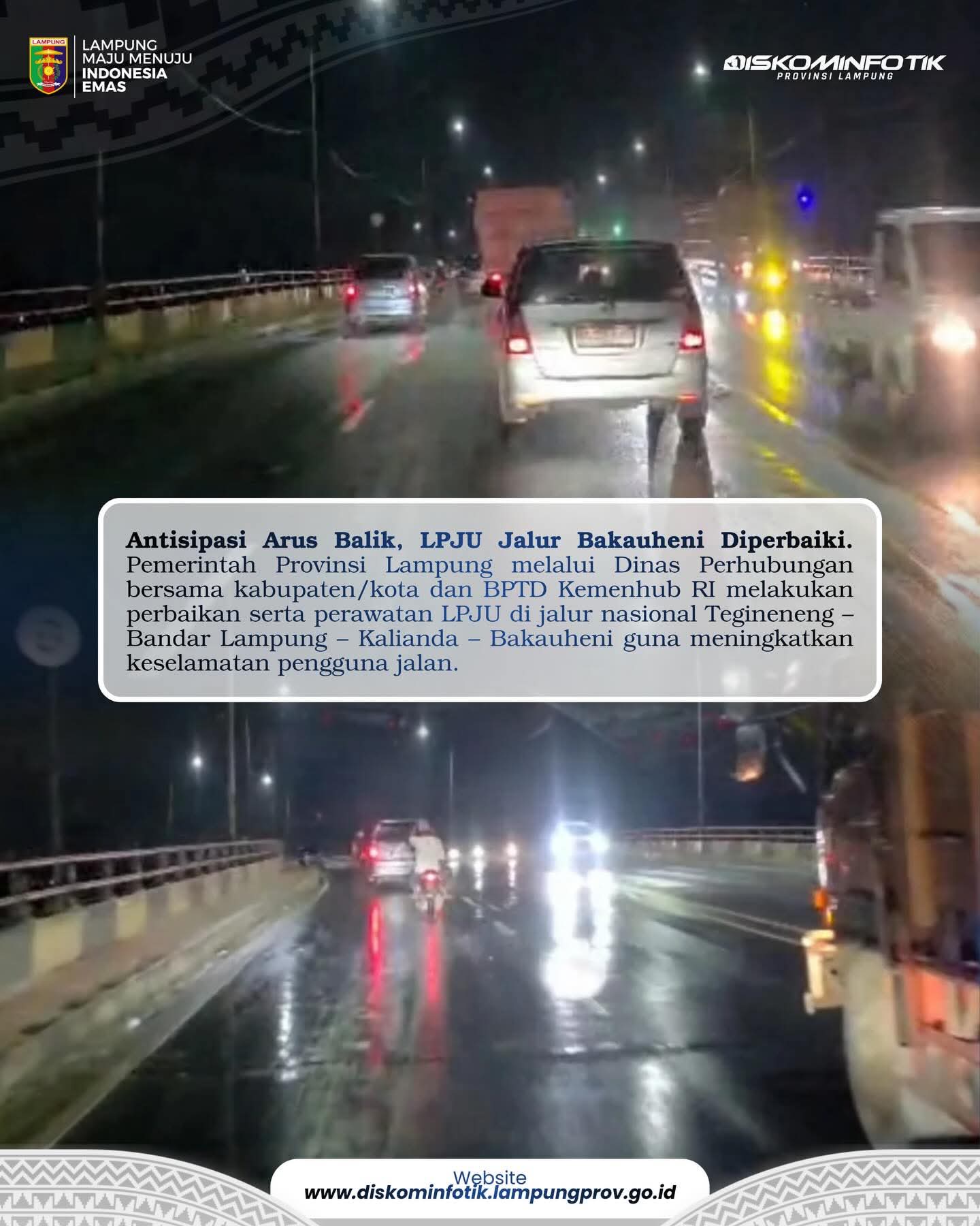 Pemerintah Provinsi Lampung berharap langkah ini mampu meningkatkan keamanan, keselamatan, serta kelancaran arus mudik dan balik Lebaran bagi masyarakat yang melintasi jalur utama menuju Pelabuhan Bakauheni.(ADV)