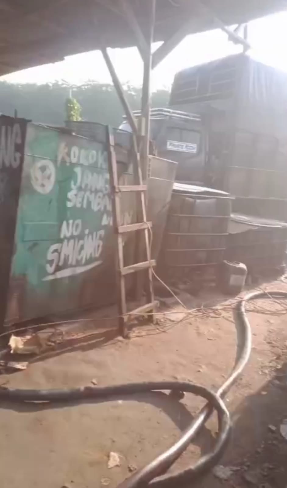 Dari pantauan di lapangan, tercium bau minyak cong yang sangat menyengat di sekitar area gudang.