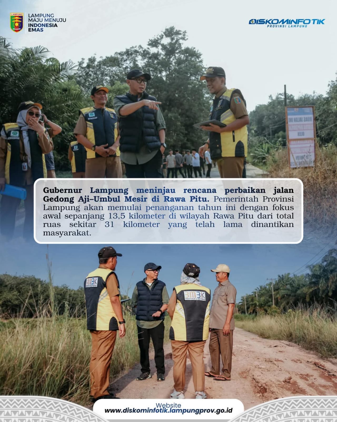 Warta Indonesia News | Mesuji – Gubernur Lampung Rahmat Mirzani Djausal meninjau rencana perbaikan ruas jalan Gedong Aji – Umbul Mesir di Kecamatan Rawa Pitu, Kabupaten Tulang Bawang, Selasa (3/3/2026).