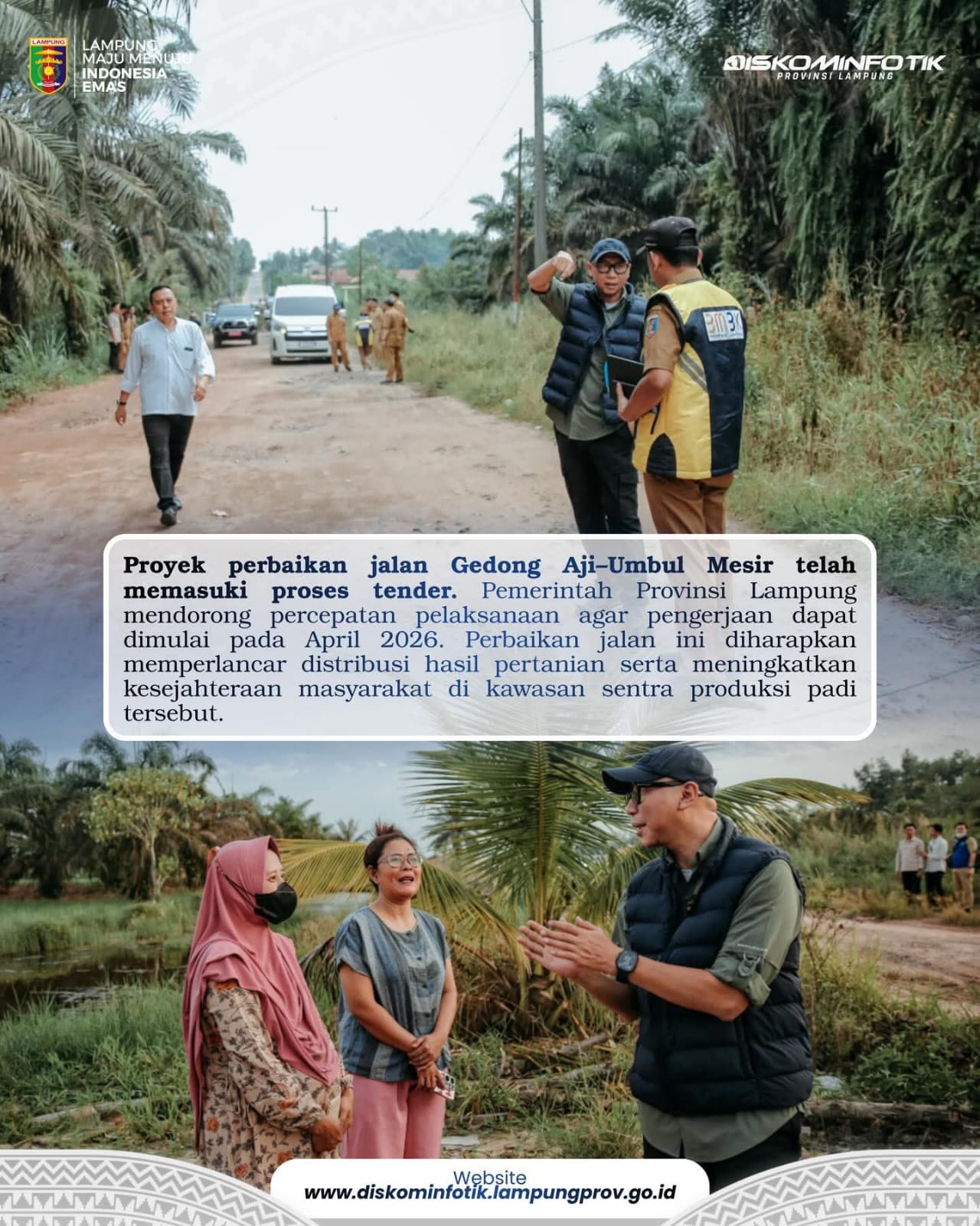 Gubernur Mirza menegaskan bahwa proyek tersebut telah masuk dalam perencanaan Pemprov Lampung sejak 2025 dan saat ini telah memasuki proses tender.