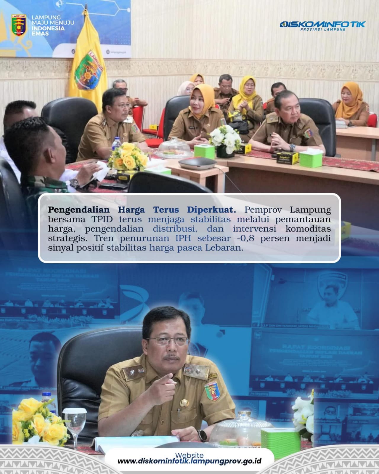 Melalui sinergi yang kuat antarinstansi, Pemerintah Provinsi Lampung berkomitmen menjaga daya beli masyarakat dan memastikan harga kebutuhan pokok tetap stabil, sekaligus memperkuat ketahanan ekonomi daerah di tengah dinamika ekonomi global. (Adv)