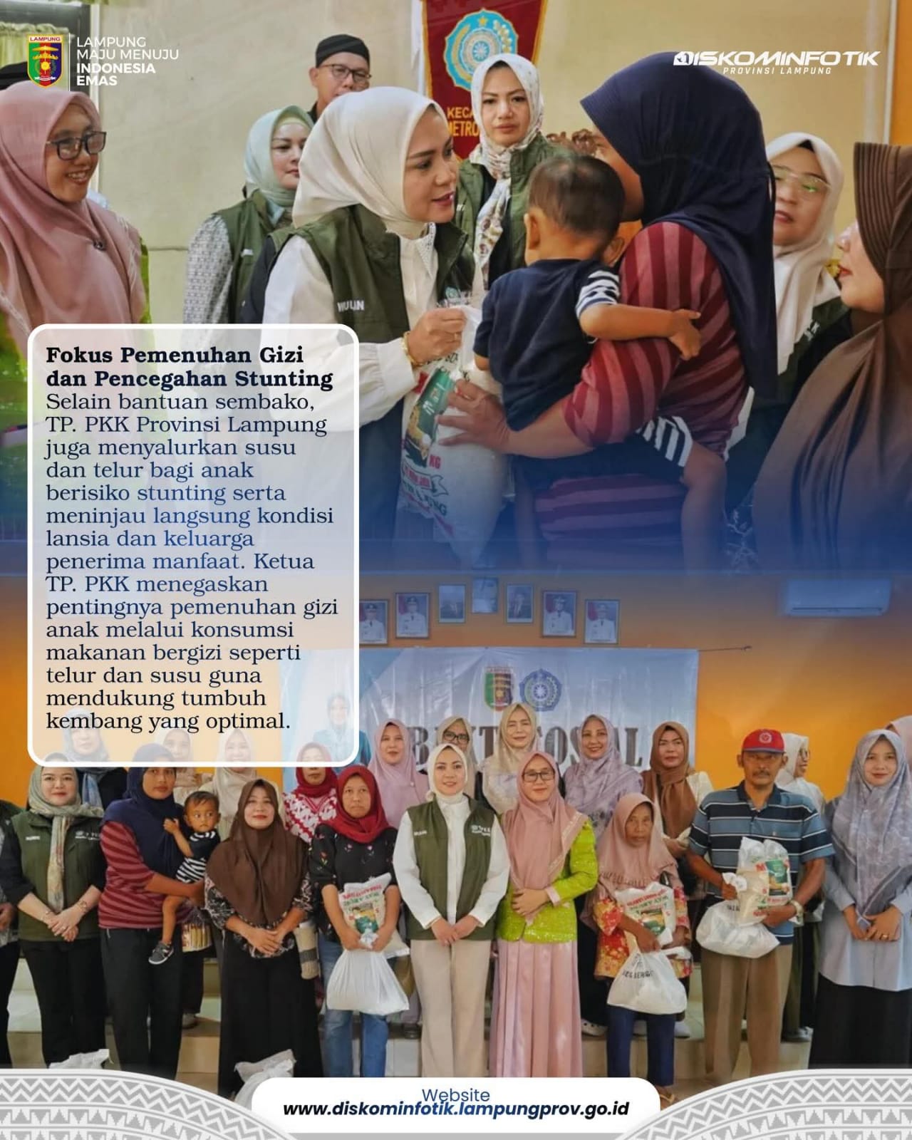 Kegiatan ini menjadi bagian dari komitmen TP. PKK Provinsi Lampung dalam memperkuat kepedulian sosial, meningkatkan kesejahteraan keluarga, serta mendukung percepatan penurunan stunting di daerah. ( Adv)