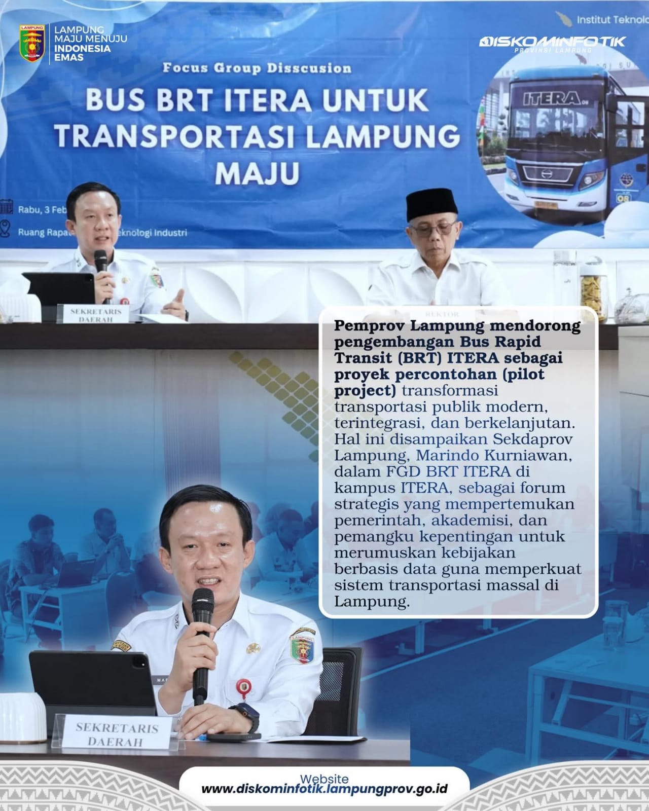 Melalui forum diskusi bersama akademisi dan para pemangku kepentingan di Institut Teknologi Sumatera, Sekdaprov Marindo Kurniawan menegaskan bahwa angkutan massal menjadi kunci meningkatkan mobilitas, efisiensi, sekaligus menekan kemacetan dan emisi di daerah.