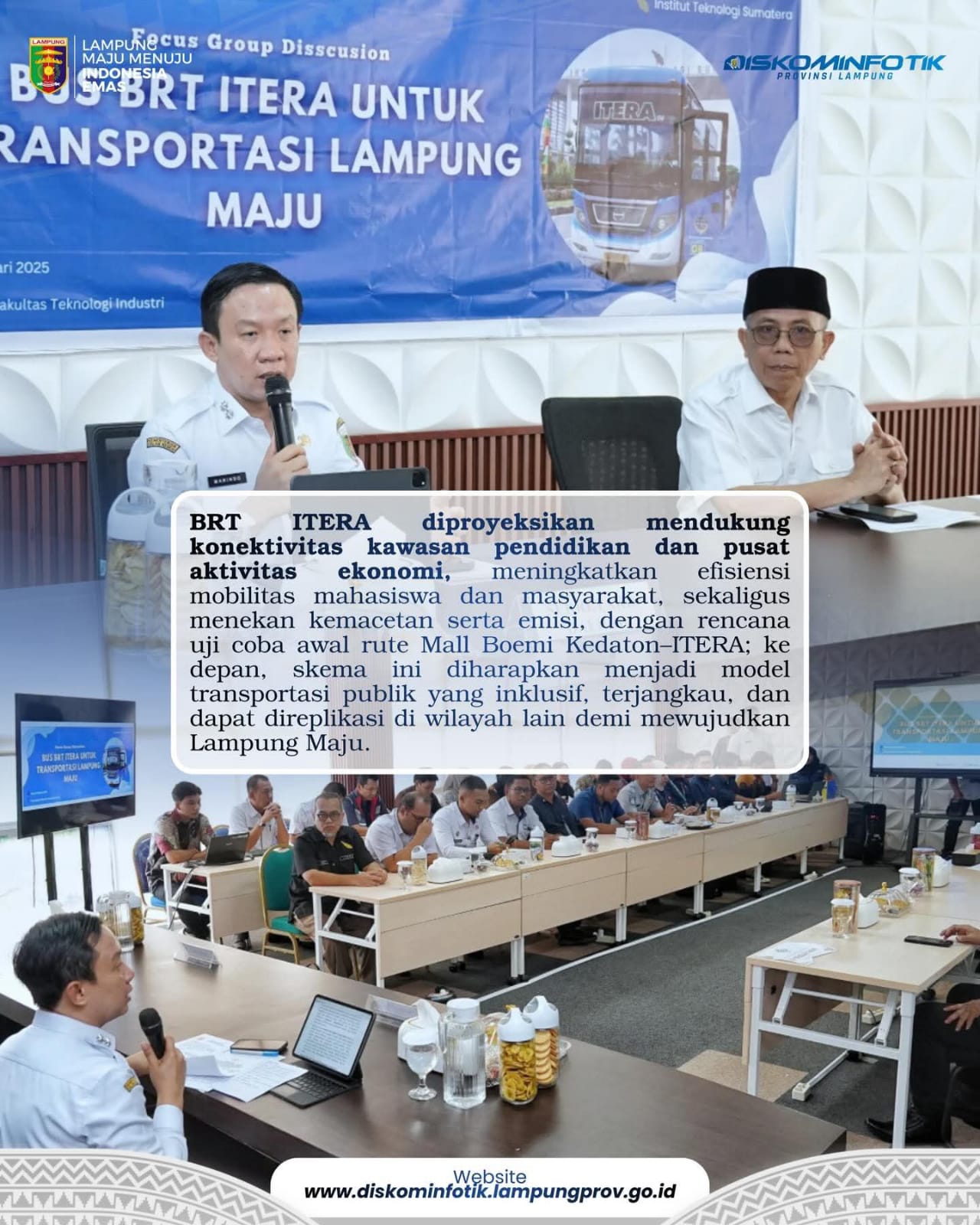 Warta IndonesiaNews |Bandar Lampung |Pemprov Lampung mendorong pengembangan Bus Rapid Transit (BRT) ITERA sebagai proyek percontohan transportasi publik modern, terintegrasi, dan berkelanjutan.