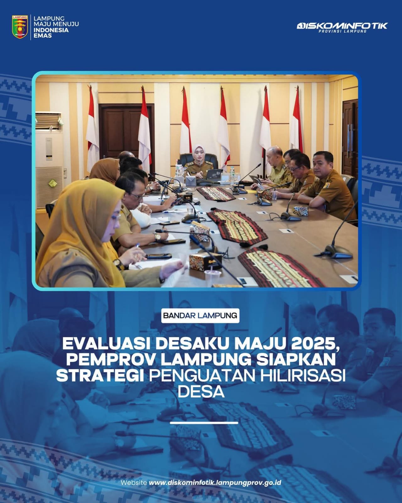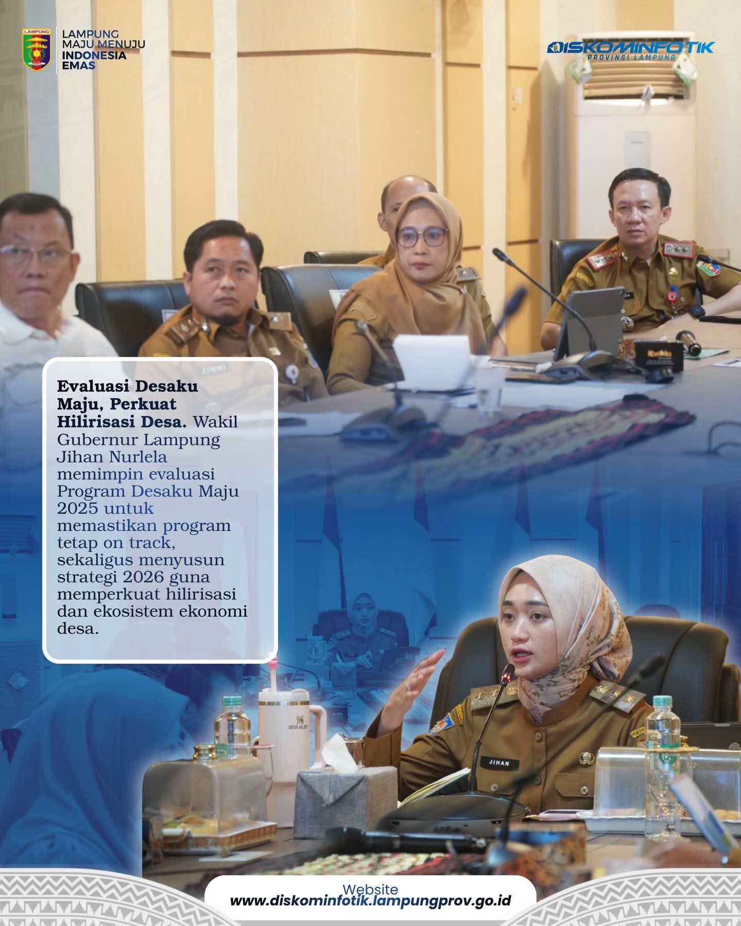 WartaIndonesiaNews – Bandar Lampung – Wakil Gubernur Lampung Jihan Nurlela memimpin rapat evaluasi Program Desaku Maju Tahun 2025 sekaligus menyusun rencana penguatan tahun 2026 di Ruang Sakai Sambayan, Selasa (7/4/2026). Evaluasi ini dilakukan untuk memastikan program berjalan sesuai target serta memberikan dampak nyata bagi perekonomian desa.