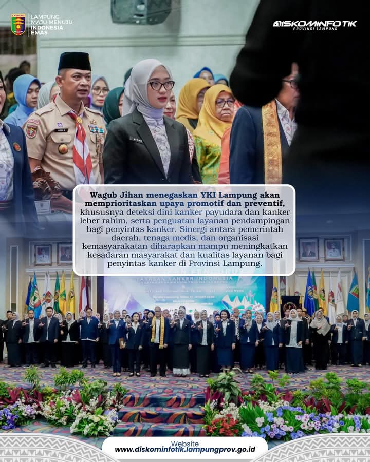 Dalam kepemimpinannya, YKI Lampung akan memfokuskan program pada upaya promotif dan preventif, khususnya deteksi dini kanker payudara dan kanker leher rahim, serta penguatan layanan pendampingan bagi penyintas kanker melalui sinergi dengan tenaga medis dan berbagai pemangku kepentingan. ( Adv)